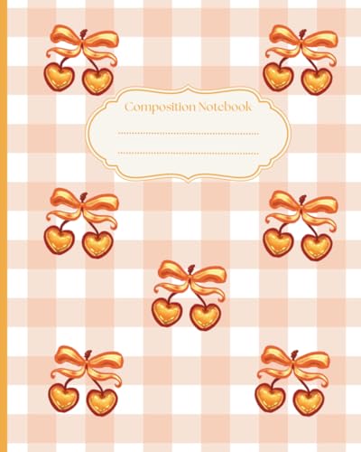 Preppy Cherry Coquette Bow Composition Notebook: Orange Bow Cherry Composition Journal | Preppy Classroom | Kawaii College Ruled Aesthetic Cool Design ... Girls, Women, School, Office, College, Work