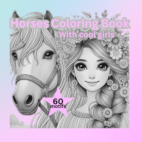 Horse coloring book with cool girls: from 7 years: coloring pages with 60 great motifs, for coloring and relaxing,