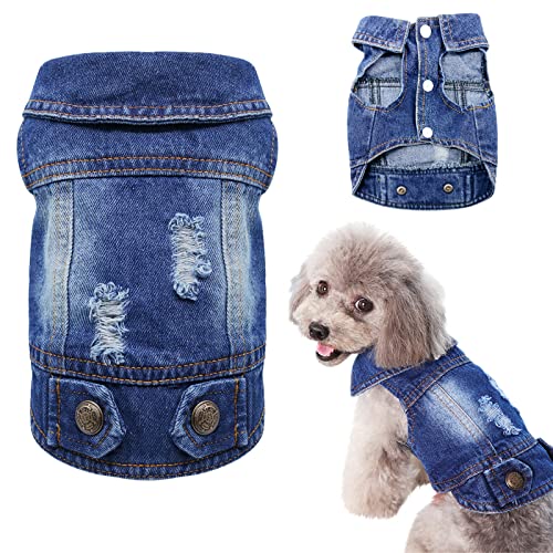 SILD Husdjurskläder hundjeans jacka cool blå denimrock för små medelstora hundar kavajvästar klassiska huvtröjor valp blå vintage tvättade kläder (XL)
