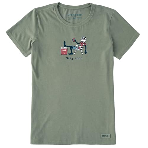 Life is Good Men's Crusher Tee, Short Sleeve Cotton Graphic T-Shirts, Stay Cool Jake, Moss Green