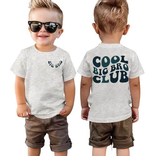 Big Brother-skjorta Cool Big Bro Club t-shirt pojkar syskon, t-shirt med tryck, babykläder, stor bror t-shirts sommar, kortärmade toppar, bomullströja, Blomgrå-1, 18-24 månader