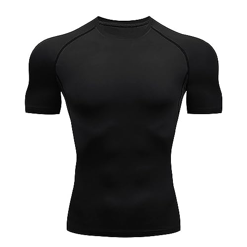 VGEBY Kompressionsskjortor för Män,Cool Dry Short Sleeve Compression Shirts Sport T Shirts Atletisk Träningströja för Löpning Sport Fitness (Svart)