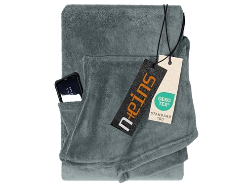 npluseins Coral Fleece pläd – originalet med ärm & magväska 1448.2043 antracit