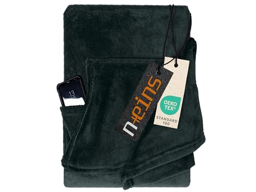 npluseins Coral Fleece gosig filt barn – originalet med ärmar och midjeväska 1448,2043, 90 x 150 cm, petrol