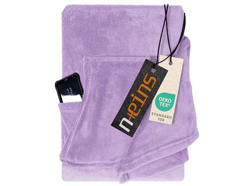 npluseins Coral Fleece gosig filt – originalet med ärmar och midjeväska 1448.2043, syren