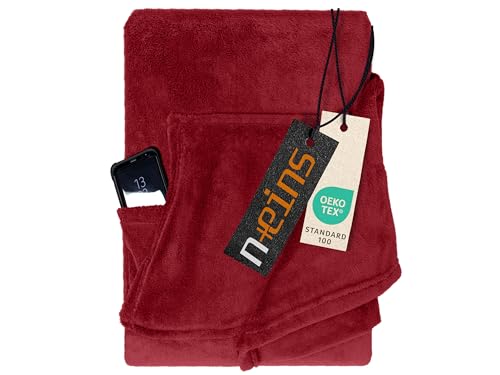 npluseins Coral Fleece gosig filt – originalet med ärmar och midjeväska 1448.2043, vinröd