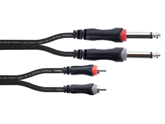Cordial 14840 Jack / Phono Audio Connection Cable [2X Jack 6,3 Mm (Mono) - 2X Rca-Kontakter] 1,50 M Svart Pvc-Mantel, Dubbla Ledare
