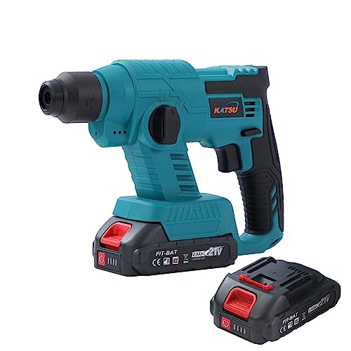 KATSU FIT-BAT 21V Cordless SDS Plus Rotary Hammer Drill with 2 x 1.5Ah Lithium Battery and Charger, for Wood Steel Stone Concrete Brick Wall Drill Construction (Budget)