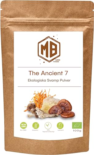 MB Superfoods - Ekologisk 7 Svampblandning i Pulverform 100g - Hög Styrkastillskott med Reishi, Chaga, Shiitake, Maitake, Lion's Mane, Cordyceps & Tremella - Äkta Svampkomplex för Herbal Wellness