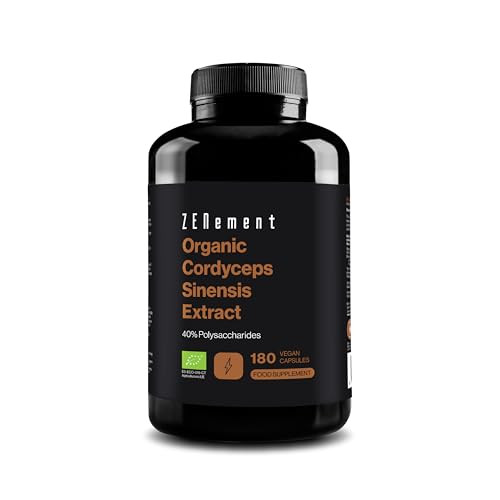 Ekologiskt Cordyceps sinensis-extrakt, 40% Polysackarider, 180 Veganska Kapslar | Organisk, Vegan, Glutenfri, Fri Från Tillsatser, Icke-GMO | Zenement