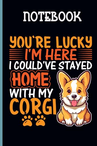Quote You're Lucky I'm Here I Could've Stayed Home With My Corgi With Image Dog Cute On Black Background Gift For Animal Lover: Notebook