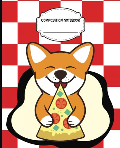 Composition Notebook: Corgi Dog eating a slice of Pizza with a red and white checkered background. 7.5" X 9.25" with 120 high quality college lined ... Workbook for Boys Girls Teens and Adults