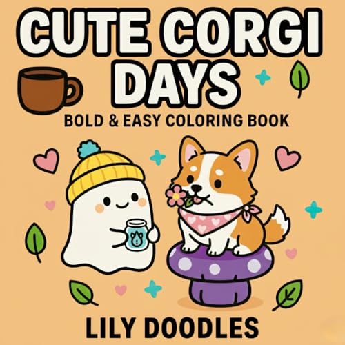 Cute Corgi Days – A Bold & Easy Coloring Book with a Corgi Dog and a Cute Ghost