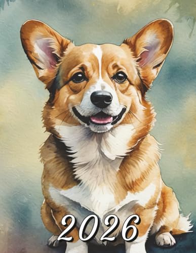 2026: Large Monthly Calendar Planner – Watercolor Welsh Corgi Dog
