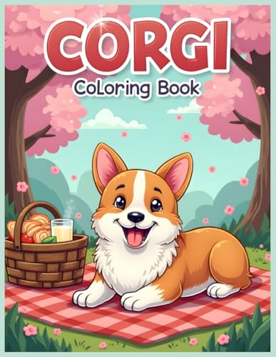 Corgi Dog Coloring Book: Spring Picnic Scenes with Cute Corgis, Cherry Blossoms – Relaxing, Fun & Coloring Pages