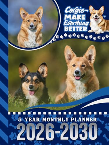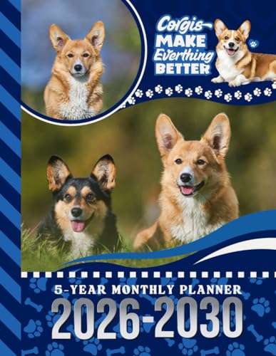 5-Year Monthly Planner 2026-2030: Hardcover / Dated Large / 60 Month Agenda / With Notes Pages - To Do List / Pembroke Welsh Corgi Dog Art Cover Design