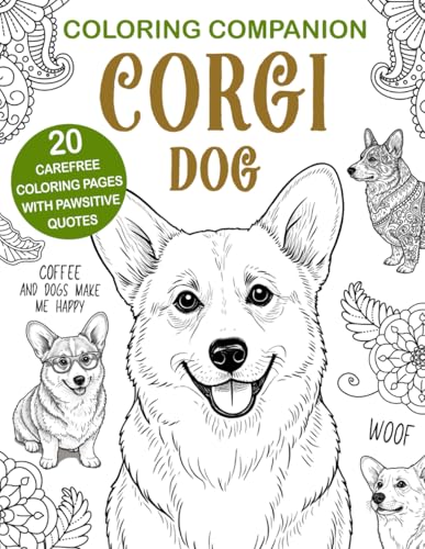 Coloring Companion Corgi Dog: Fun Mandalas & Hilarious Quotes | 20 Dog Illustrations for Relaxation and Stress Relief Activity Unique Gift