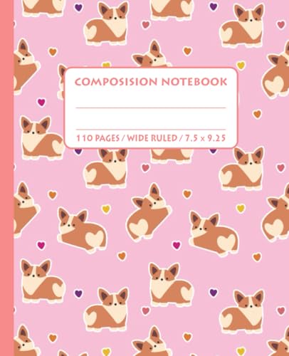 Corgi Dog Composition Notebook Wide Ruled For Kids Students Teens