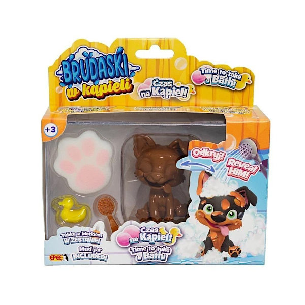 En smutsig gul och vit Corgi-hund i ett bad
