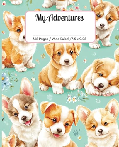 Corgi Puppy Journal for Girls – Adorable Wide Ruled Notebook with Cute Dog Cover, 365 Pages, 7.5” x 9.25” – Daily Diary, Writing Journal, School Notes, Gift for Corgi Dog Lovers