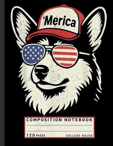 Composition Notebook College Ruled: Corgi Dog with Sunglasses and Hat, Patriotic 4th of July Journal for Pet Lovers and Dog Owners