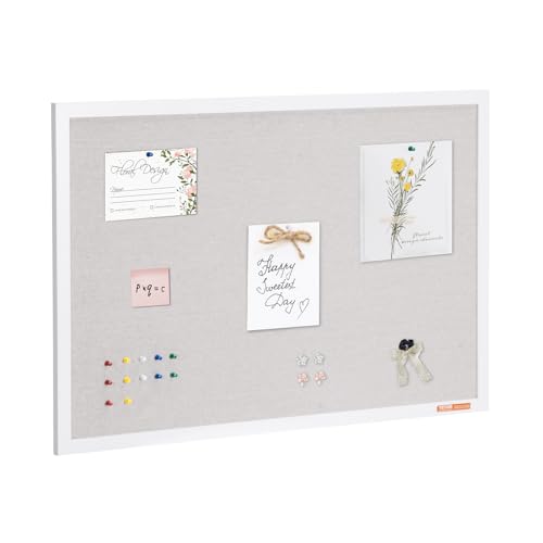 VEVOR 91 cm x 61 cm vit korkbräda med linneyta – snygg väggmonterad anslagstavla för hem, skola, kontor – elegant och funktionellt anslagstavla