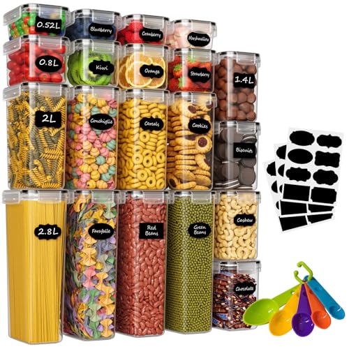 Withosent Förvaringsburkar, lufttäta set om 20, förvaringslåda för kök med lock av plast, förvaringsbehållare, köksbehållare för spaghetti, mjöl, müsli, cornflakes (2,8 l 2 l 1,4 l 0,8 l 0,52 l)