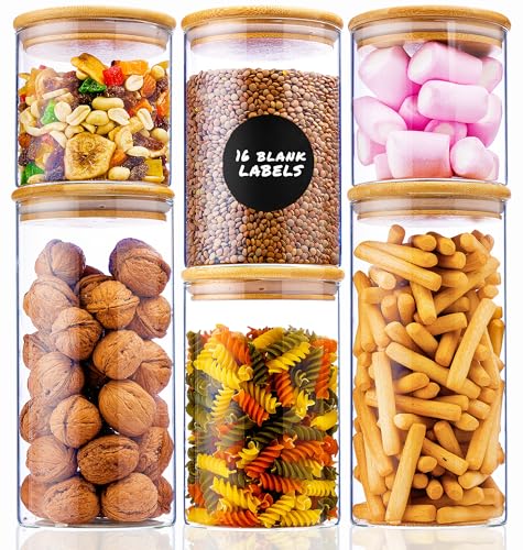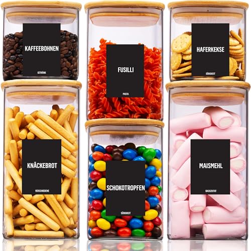 Deco Haus® Förvaringsglas med Lock, 6-set [+ETIKETTER] - För Müsli, Cornflakes, Socker, Spaghetti - Förvaringsburkar i Glas med Tätslutande Lock - Förvaringsglas - Förvaringslåda Kök