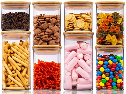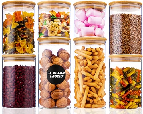 Deco Haus® Förvaringsglas med Tätslutande Lock + Etiketter [8-pack KOMBISATS] - För Müsli, Cornflakes, Spaghetti & co. - Förvaringsburkar i Glas med Lock - Förvaringsglas - Förvaringslåda Kök