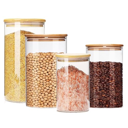 LATRAT Förvaringsburkar med lockset, förvaring lufttäta förvaringsburkar med lock, förvaringsburkar för cornflakes, spaghetti, bönor, mjöl, genomskinliga, 1 000 ml, 750 ml, 500 ml, 250 ml