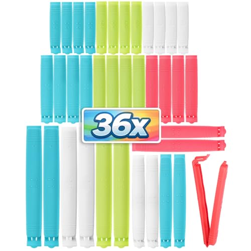 COM-FOUR® 36x förslutningsklämmor av plast, förslutningsklämmor i olika storlekar och färger, fryspåsklämma och påsklämmor för cornflakes, nötter eller kaffe (36 stycken - 6cm / 8cm / 11cm / 14cm)