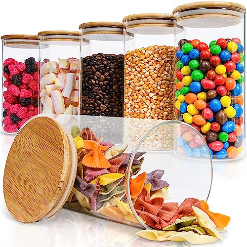 Deco Haus® Förvaringsglas med Lock, 6-pack - För Müsli, Cornflakes, Socker, Spaghetti - Förvaringsburkar Glas med Tätslutande Lock - Förvaringsglas - Förvaringslåda Kök Förvaringsbehållare
