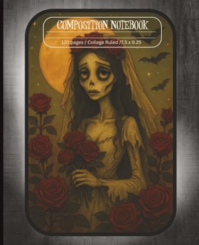 Corpse Bride Notebook | 7.5 x 9.25 | 120 Pages | College Ruled | Corpse Bride Journal | Vintage Composition Notebook | Lined Journal for Women, Teens, Girls and Adults