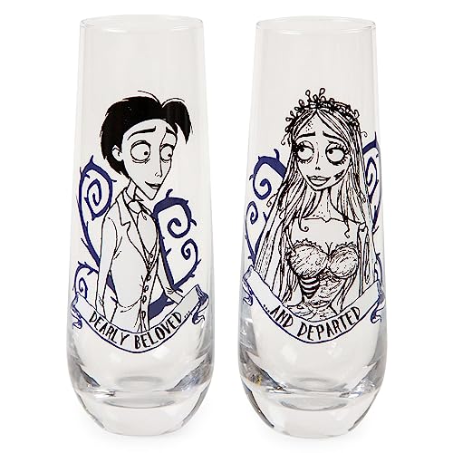Tim Burton's Corpse Bride "Dearly Beloved" stamlösa räfflade glasvaror | Set med 2
