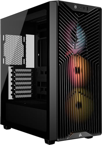 CORSAIR 3200D RS ARGB Mid Tower PC-Chassi – 3x RS120 ARGB PWM Fläktar Ingår, Högt Luftflöde, Stöd för 360 mm Radiator, USB-C, Inbyggd Stabiliseringsarm för GPU, Härdat Glas, GPU Anti-Sag – Svart