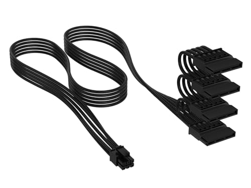 CORSAIR Elite Premium SATA-strömkabel med Individuellt Hölje (4 Kontakter) Type 5 – 750mm, Lågprofils Kabelkammar, Trippellager Mesh/Paracord-Design – Svart