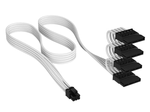 CORSAIR Elite Premium SATA-strömkabel med Individuellt Hölje (4 Kontakter) Type 5 – 750mm, Lågprofils Kabelkammar, Trippellager Mesh/Paracord-Design – Vit