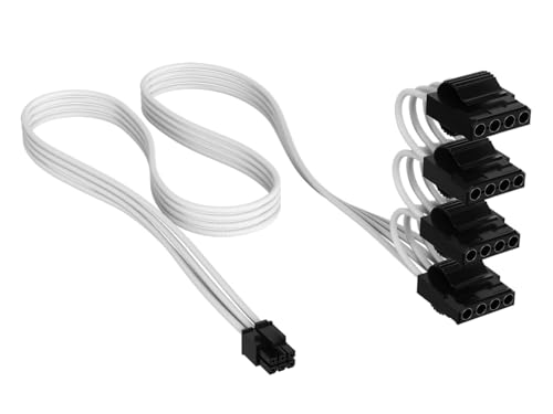 CORSAIR Elite Premium SATA-strömkabel med Individuellt Hölje (4 Kontakter) Type 4 – 750mm, Lågprofils Kabelkammar, Trippellager Mesh/Paracord-Design – Vit