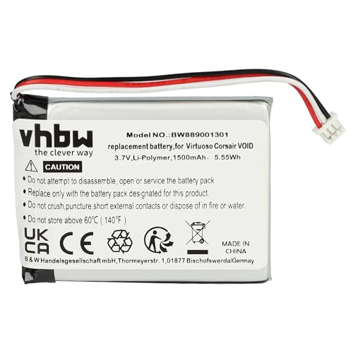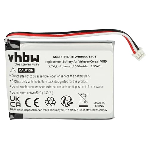 vhbw Batteri kompatibelt med Corsair Void PRO RGB SE, Void, Void PRO RGB, Void PRO trådlöst headset, hörlurar (1 500 mAh, 3,7 V, Li-Ion)