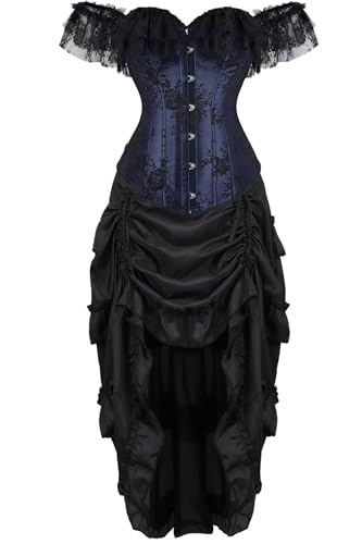 Blå korsetter corset kvinnor klänning Bustier with Sleeves Off The Shoulder spets Floral Sexy plus storlek kostyms 7XL