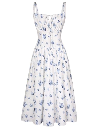 Floral Summer Corset Dress for Women Ruched Bust Midi Dresses White Navy Floral S