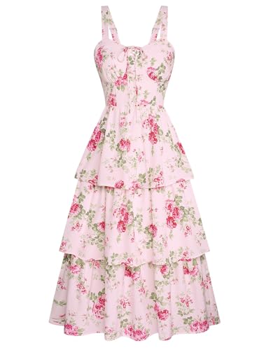 Summer Wedding Guest Dresses for Women Tiered Floral Dress Corset Boho Beach Maxi Dresses Pink Rose Size 12