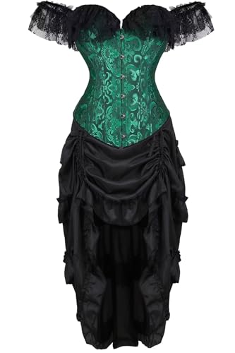 Corset klänning kjol corset kvinnor Bustier with Sleeves Off The Shoulder spets Floral Sexy plus storlek Halloween Grön 4XL
