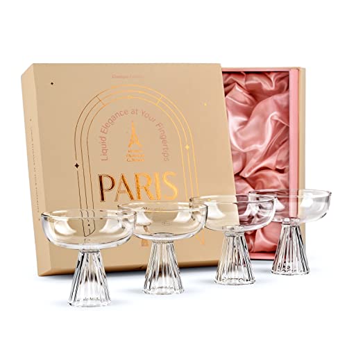 Glassique Cadeau Moderna Paris cocktail- och champagnekupéglas | Set med 4 | 230 ml borosilikatfat för Espresso Martini, Cosmopolitan, Daiquiri, Manhattan, Sidecar