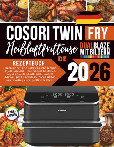 COSORI Dual Blaze TwinFry Heißluftfritteuse Rezeptbuch 2026: Knusprige, saftige & alltagstaugliche Rezepte für jede Tageszeit – von Frühstück bis ... Smart Cooking & energieeffiziente Küche.