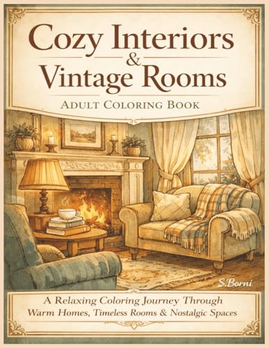 Cozy Interiors & Vintage Rooms Adult Coloring Book: Relaxing Cozy Home Interiors, Vintage Rooms, Cottage Style Living Spaces and Calm Interior Designs for Stress Relief and Relaxation