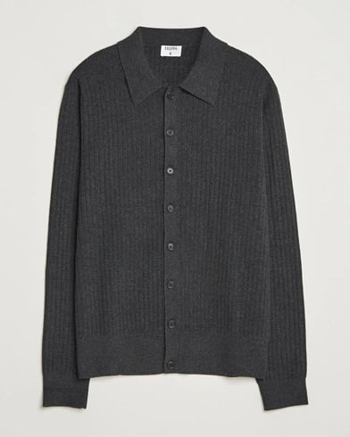 Filippa K Cotton Merino Knitted Cardigan Anthracite Melange