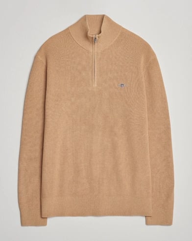 GANT Cotton/Merino Ribbed Half Zip Khaki Melange