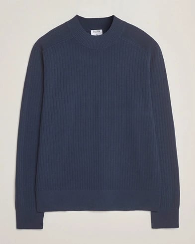 Filippa K Cotton Merino Knitted Mock Neck Sweater Dusk Blue