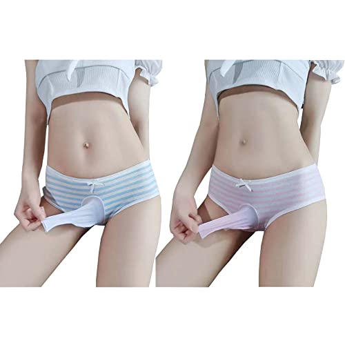 FASXIR Japanese Style Cute Striped Cotton Thong Pouch Bikini Underwear Briefs Cosplay Panties for Women Men Pack of 2 (Style 2)